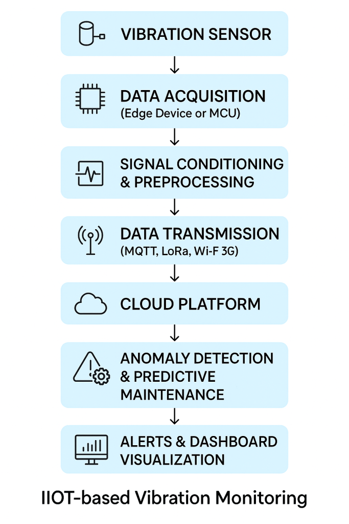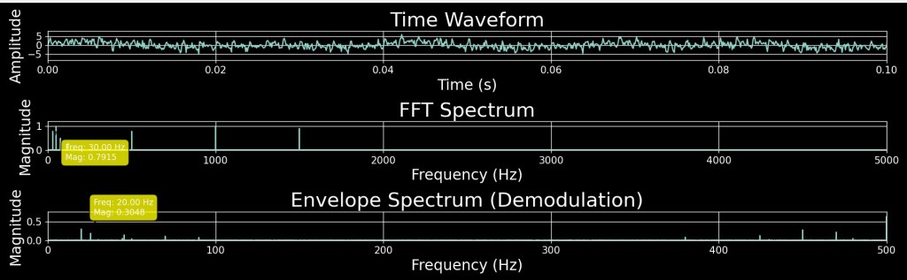 The raw vibration signal is a complex mixture of different frequencies and amplitudes. To make sense of this data, it undergoes signal processing.